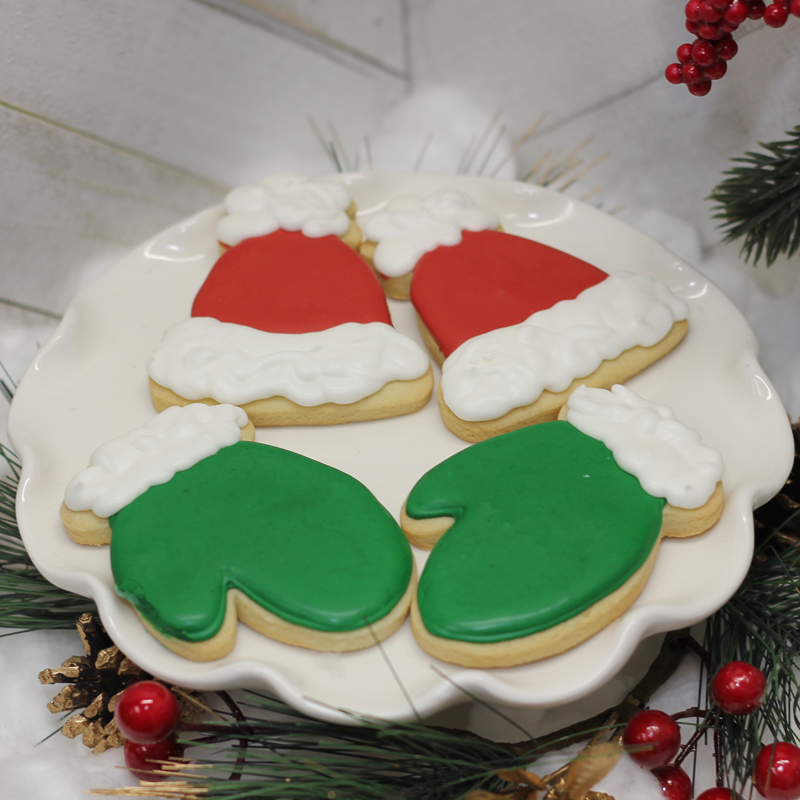 4 pack handmade Christmas cookies, Mitts and Toques, for a limited time at Goodies Bakeshop, order ahead!