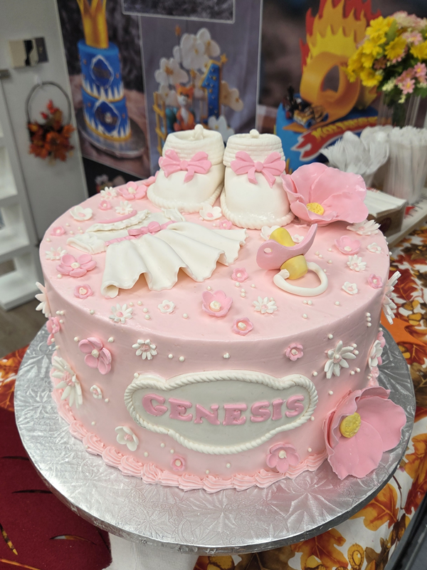 Baby Shoes and Buttercream Frills Gender Reveal Cake